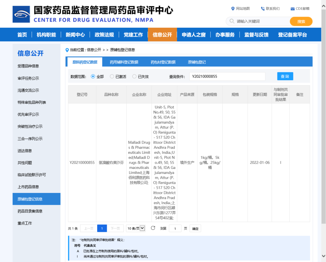 以下為新增待 批準(zhǔn) 原料藥詳情: