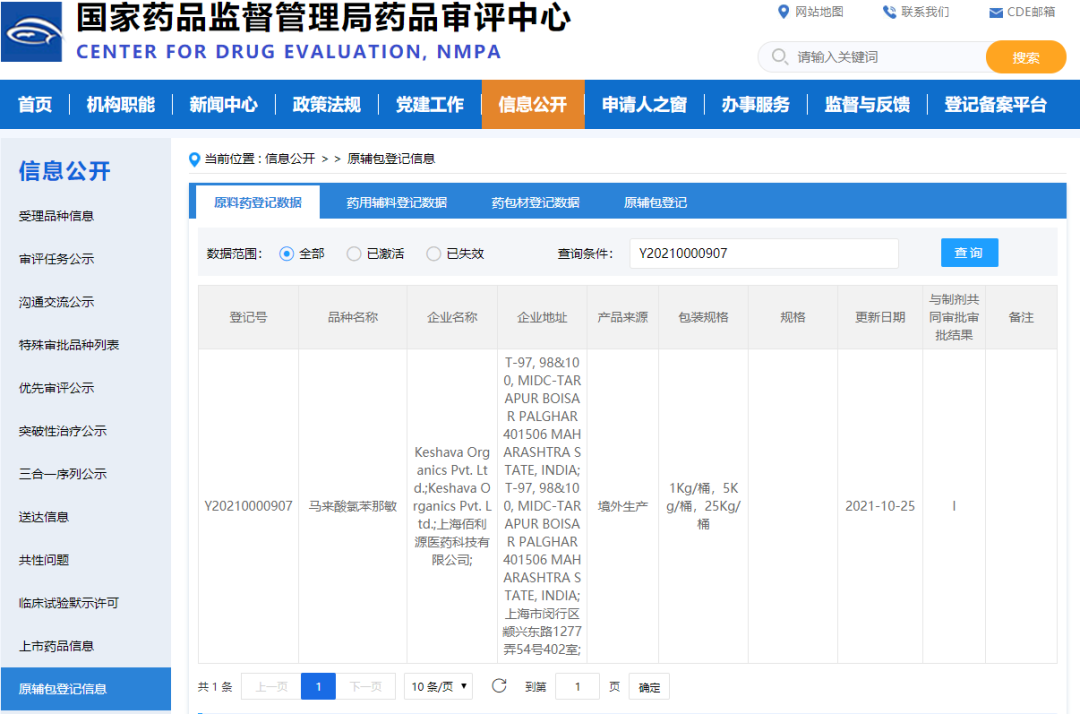 以下為新增待 批準(zhǔn) 原料藥詳情: