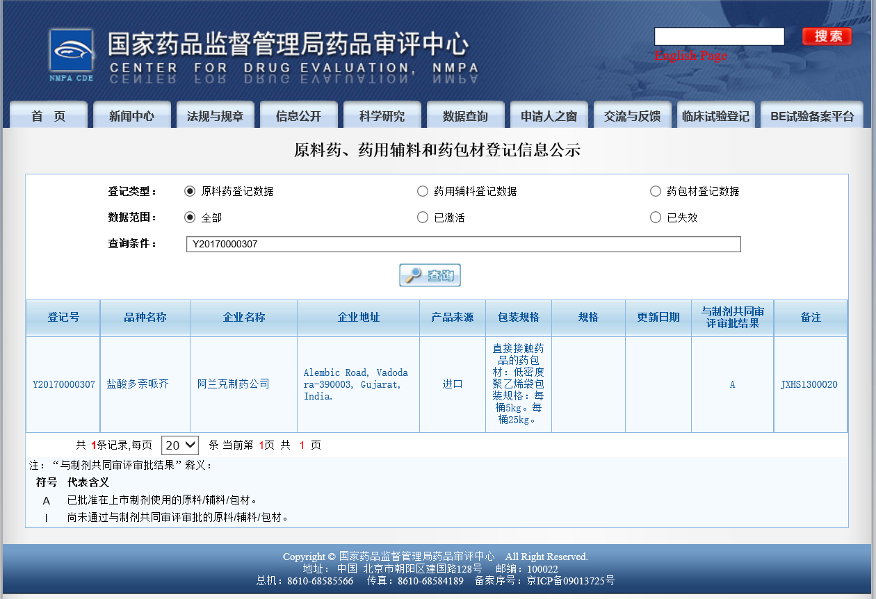 3. 鹽酸多奈哌齊(登記號(hào):Y20170000307)