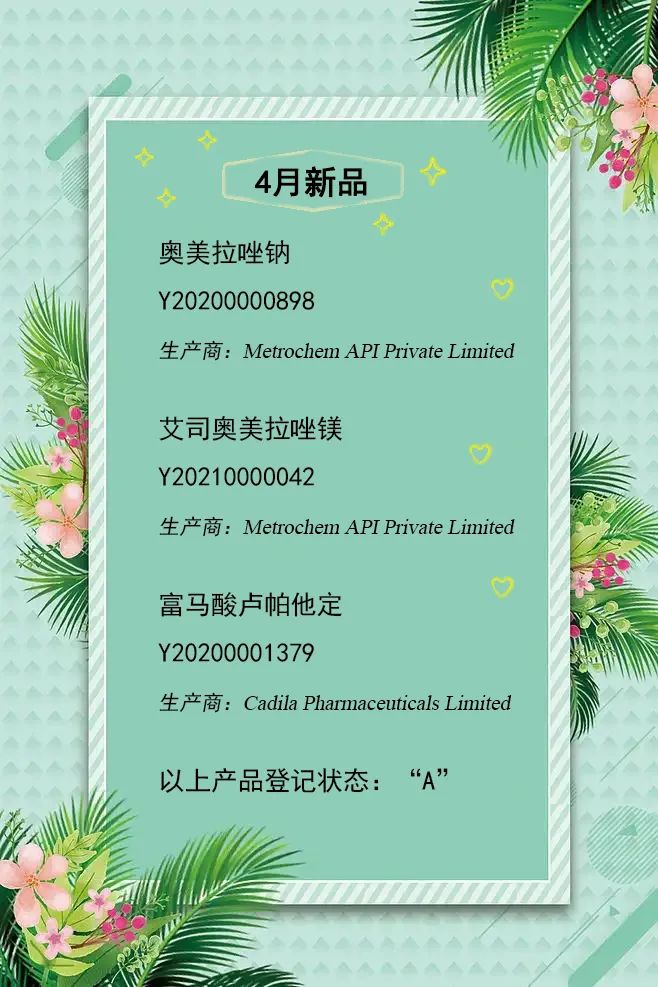 我司積極進(jìn)行原料藥審批,幾乎每月均有新增批準(zhǔn)品種。